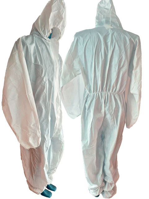 -Traje laminado repelente a líquidos, alcohol y sangre.